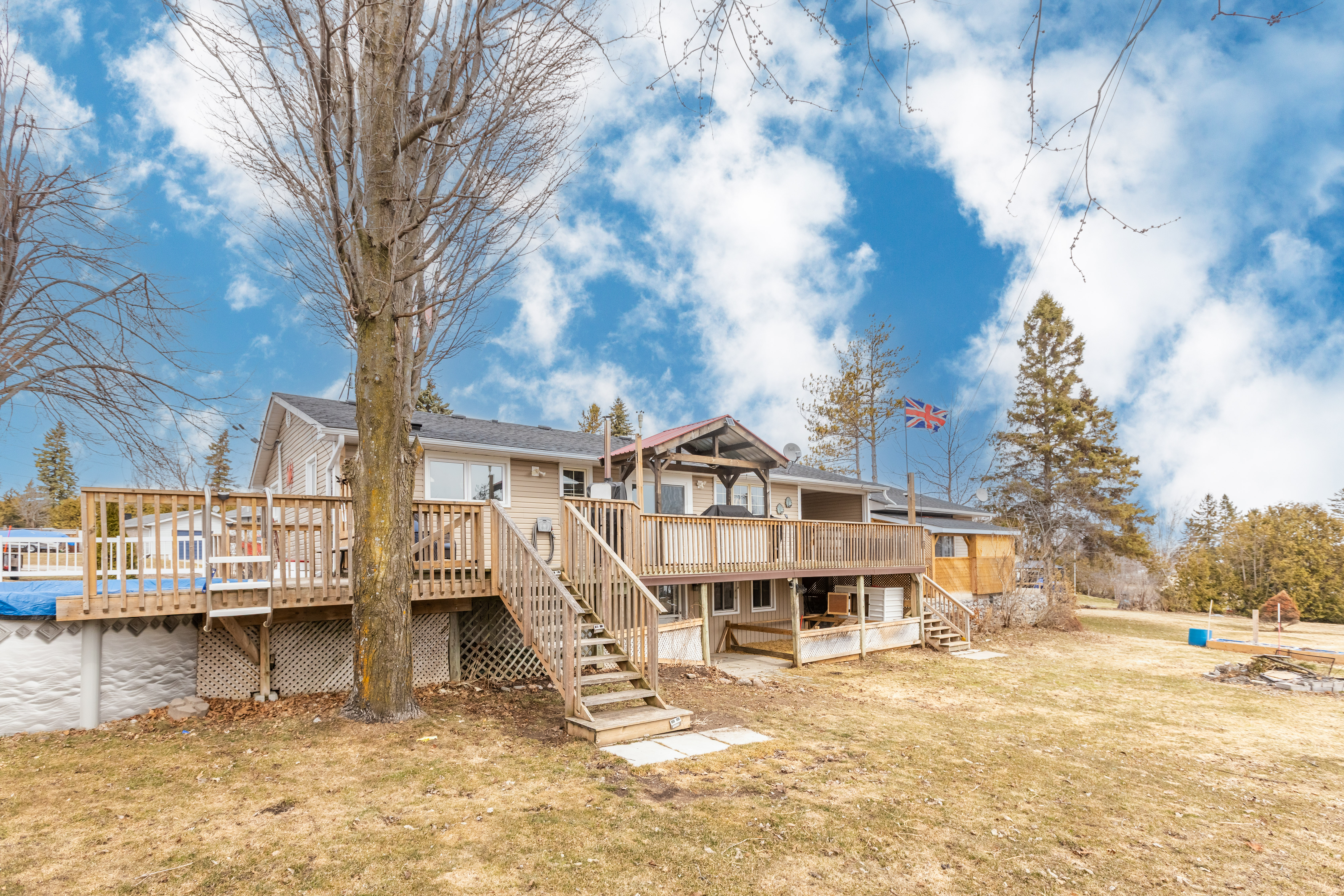 Beautifully renovated bungalow with a finished walkout basement and access to Sturgeon Lake! 1247 sqft with 3 bedrooms and 2.5 baths. Stunning kitchen with quartz countertops, stainless steel appliances, and a massive peninsula with breakfast bar seating. The living room has a propane fireplace that can be seen from the kitchen thanks to the open concept layout of the main living space. Spacious back deck with a custom BBQ canopy and far reaching views across the lake. Access to the pool off one end and the hot tub off the other. Master bedroom ft. a renovated 4pc ensuite. Another bedroom on the main floor, along with an updated 3pc bath. The fully finished walkout basement ft. a 3rd bedroom, newly renovated 2pc bathroom, and a large rec room with propane fireplace. 24x30 double garage / workshop, insulated and heated with a wood stove and propane heater. 8ft high doors. Multiple shared lakefront lots through the community association provide a variety of uses from picnic sites, open park spaces, fishing areas, boat launch, and docking for your boat (subject to availability). There is also a community centre building that can be rented out. Long list of updates that showcase how well this property has been maintained, and how little work (if any) is left for you!